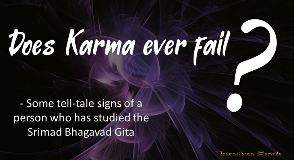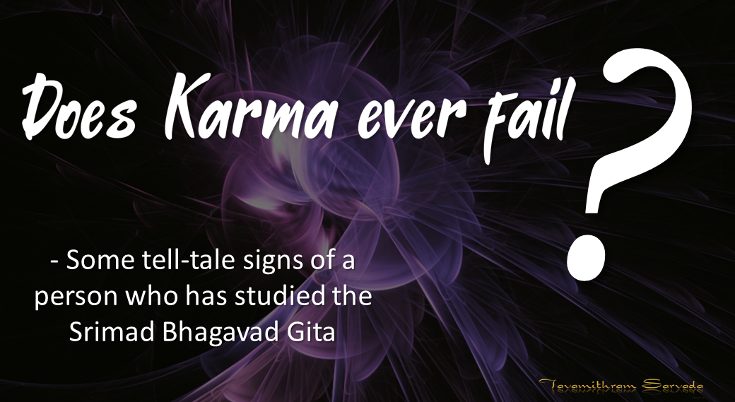In one of my posts or videos, I described Karma as ‘the never-failing and absolutely unforgiving natural law of Cause and Effect.’ Those who have truly experienced the way Karma works will surely agree with me. Well, let me end this post on a pleasing and encouraging note by quoting a Shloka from the 6th chapter of the SBG.