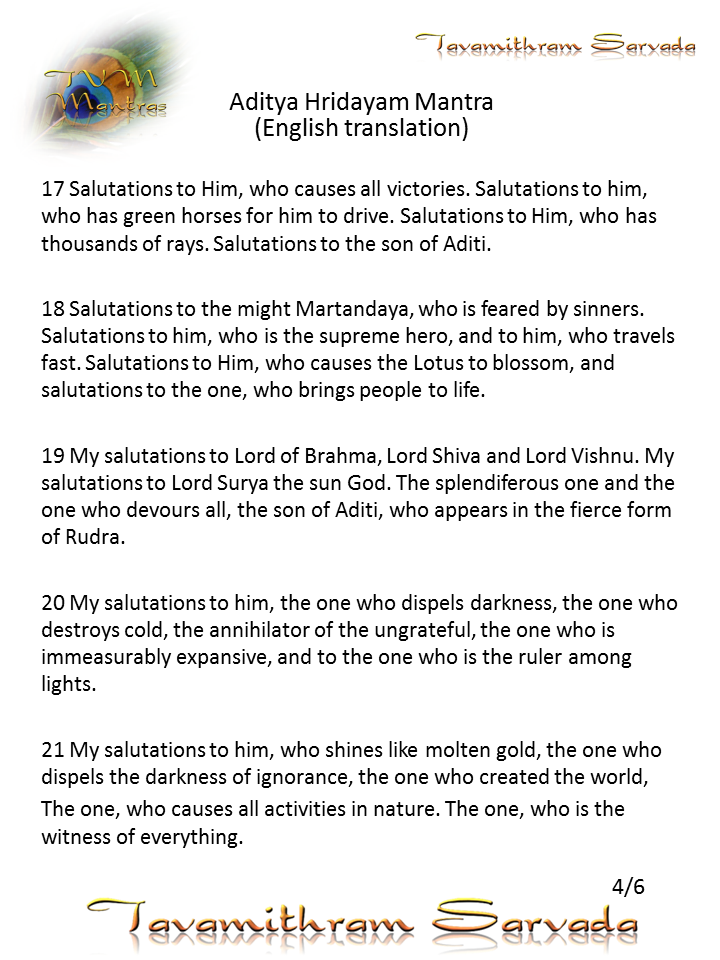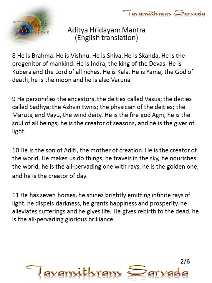 This mystical hymn, dedicated to the Sun God has the following benefits when chanted regularly –