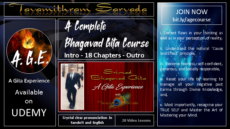 Click on the link below to the Udemy Course A.G.E. A Gita Experience with Tavamithram Sarvada