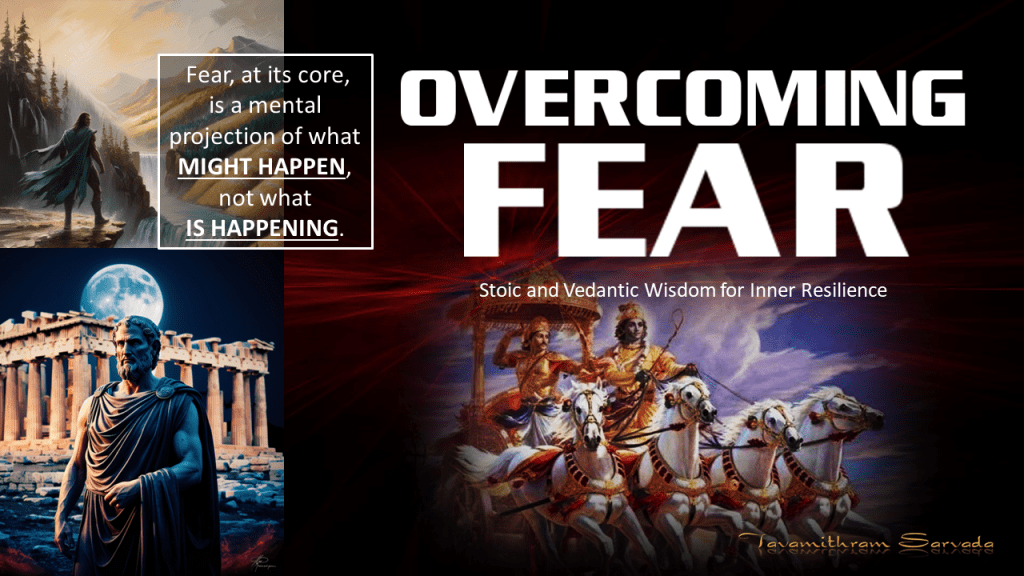 Path to Serenity: Stoic Resilience and Vedantic Enlightenment 01 Anger Management: 02 Overcoming Fear: Share this: Click to share on X (Opens in new window) X Click to share on Facebook (Opens in new window) Facebook Click to share on LinkedIn (Opens in new window) LinkedIn Click to share on WhatsApp (Opens in new window) WhatsApp Click to email a link to a friend (Opens in new window) Email