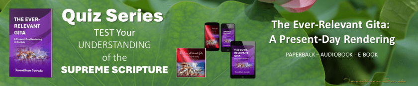 Quiz section – The Ever-Relevant Gita: A Present-Day Rendering Take the quizzes that will help you on your way towards clarity through Vedanta. Warm-Up Chapter 1/18 Chapter 2/18 Share this: Click to share on X (Opens in new window) X Click to share on Facebook (Opens in new window) Facebook Click to share on LinkedIn (Opens in new window) LinkedIn Click to share on WhatsApp (Opens in new window) WhatsApp Click to email a link to a friend (Opens in new window) Email